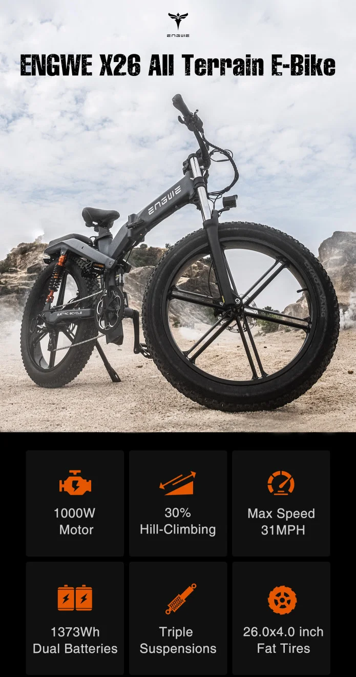 ENGWE X26 All-Terrain E-Bike: 62Mile Longest Range